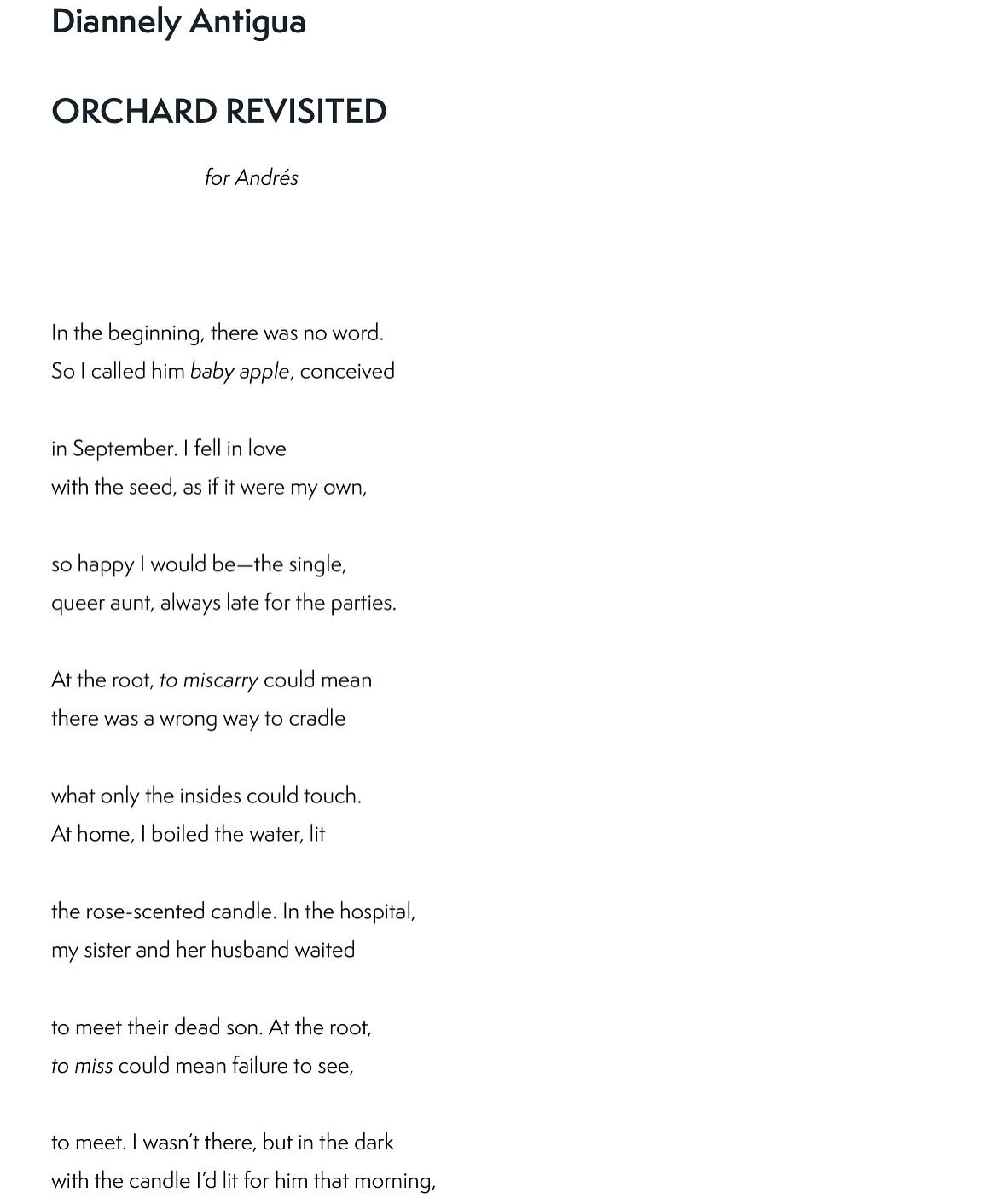 “Why do love / and dying feel the same?” asks poet Diannely Antigua in her pulsing new collection “Good Monster” (Copper Canyon)…There is sadness in these poems, but they are not sad poems; a laughter moves through the collection, dark in moments, and pleasure, too, the strange pleasure, and strange necessity, of being a body with another body, and of being a body with your own body, with a winking flicker of joy-pain throughout her lines…”