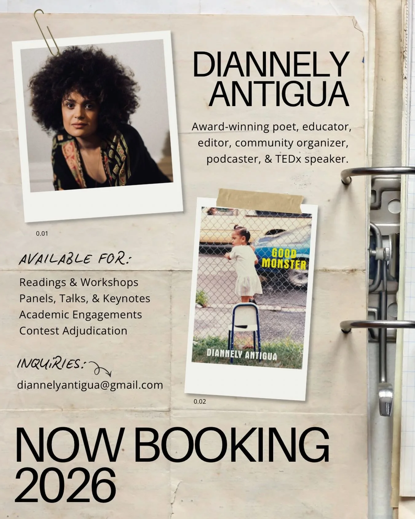 “Good Monster is one of the most successful and engaging treatments of confessional poetry in recent memory, a brilliant follow-up to Antigua’s award-winning debut. This is a book you will want to read over and over.”